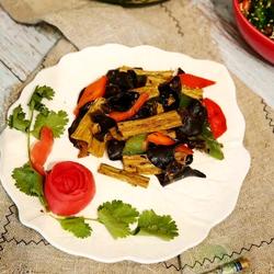 8.Add fungus and yuba and stir-fry, add appropriate amount of salt and stir-fry evenly, remove from the pot before serving Pour in an appropriate amount of light soy sauce and stir-fry evenly.