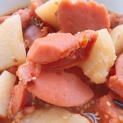 1. Combine the sausage and potatoes Cut into hob pieces.