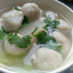 13.I put a small piece of winter melon and cooked the fish ball soup.Add some more coriander leaves.