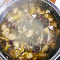 9. After the chicken is fried, add the mushrooms and add salt., cooking wine