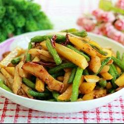 6.Put in the green beans and Spanish beans first, add salt, sugar and light soy sauce to taste