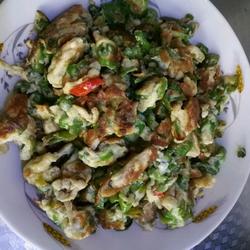 2.Chop green pepper and add eggs.