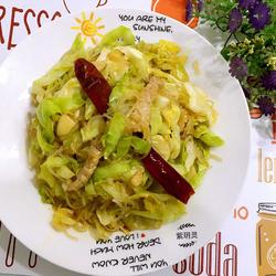 7.Add dry red pepper, stir-fry for a while, then add cabbage