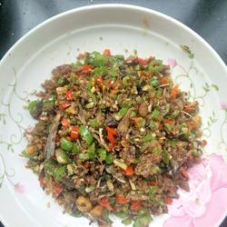 4. After preparing the spices, heat the oil and add the fish, mash the fish with a spatula, pick out the large bone fish bones, and fry until the fish is golden