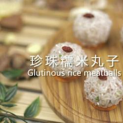 5. Scoop a small piece of filling with a spoon and use the palm of your hand Knead it into a round shape and stick the glutinous rice on the upper surface