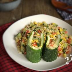 Choose straight cucumbers for making buckets.Don't waste the cucumbers.Add them to rice and stir-fry them.They taste great and are very nutritious.