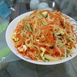 2. Cut carrots, cucumbers and potatoes into shreds and set aside