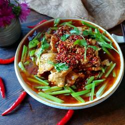 1. Prepare the required materials, cut off the fascia of the tenderloin, wash it, and celery Remove the leaves and wash them.Cut the celery into inch-long pieces with a diagonal knife.The boiled fish seasoning you bought contains three packets of ingredients, one for marinating the meat slices, one for soup, and the other for minced chili and Sichuan peppercorns.