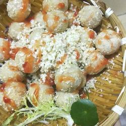 3. Rub the taro paste into Coat the small meatballs with bread crumbs and fry in oil.Take out of the pan and sprinkle with bread crumbs.Squeeze on tomato sauce for garnish.