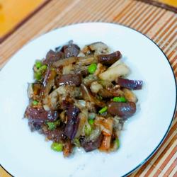 8. Add eggplant and fry together, add appropriate amount of soy sauce, oil and salt.Fry over medium heat for about 20 seconds.