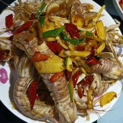 | Mantis shrimp ( 1 catty ) | Dried chili pepper ( Appropriate amount ) |