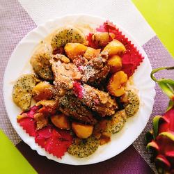 4.Small potatoes are difficult to cook, so use a small pot first Cook until six times ripe, then put the ingredients into the pot and simmer for 15-20 minutes, then add coconut and dragon fruit, and the juice is reduced;