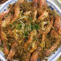 3. After the shrimps are steamed, use a bowl to adjust the sauce and put them into the steamer Add fish soy sauce, oyster sauce, sugar, and some water (steamed fish soy sauce is a bit salty) and pour it on top of the shrimp.Sprinkle some chopped green onion, shredded ginger, a little Sichuan peppercorns, and dried chili peppers.Pour hot oil on top of the shrimp to stimulate the aroma.