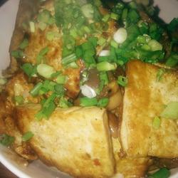 1. Cut tofu into cubes, Place in the pan and fry until golden brown on both sides