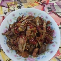 8.Add wrinkled dried red pepper and stir-fry until fragrant