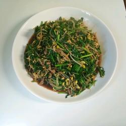 5 taels of soybean sprouts, 5 taels of leeks, 2 taels of pork, appropriate amount of oil, light soy sauce, salt, chicken essence ( ) |