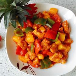 13.Pour in the pineapple chunks and stir-fry evenly;