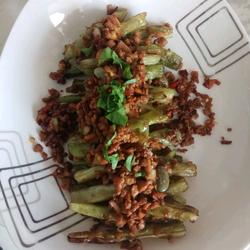 2.Put a little less oil in the oil pan, put the beans in, small Stir slowly over fire