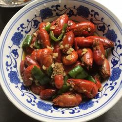 11. Stir-fry until the garlic and crayfish are mixed together, then add water and simmer