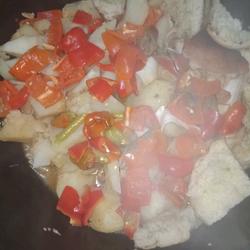 1.Cut pepper into cubes and slice garlic