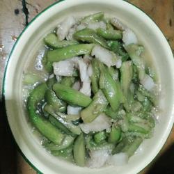 1. Heat oil in a wok, add pork, add salt and fry until half cooked, set aside