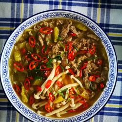 Boil the beef slices in water first to remove a certain amount of greasiness.If you want a spicier taste, you can chop the pickled peppers into small pieces, and use Chaotian red peppers for fresh red peppers.