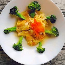 5. Heat the pan, heat the oil, add the broccoli and carrots, stir-fry evenly, add, Mix starch, salt and oil with starch water, thicken it, and put the eggs into the pot, so that the eggs will absorb the water and become particularly delicious