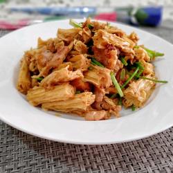 4. Add the yuba and stir-fry for two minutes.If it is too dry, add an appropriate amount of water.