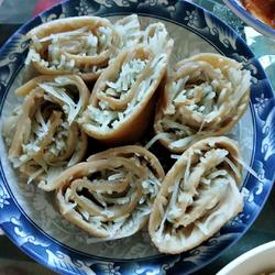 5. Roll out and sprinkle with shredded potatoes, as shown in the picture above, and then roll it like this
