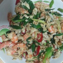 Shrimp ( half a catty ) | Garlic sprouts ( two ) |