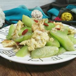 7. Add wolfberry and stir-fry slightly before serving, and stir-fry delicious and tender loofah.The eggs are ready.