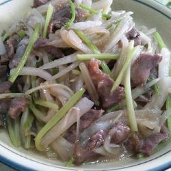 4. Stir-fried meat slices 7 Cut until cooked, add shredded radish, stir-fry