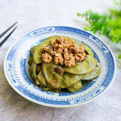 5.Heat a pan with cold oil, add diced fat meat and fry until fragrant, then add lean meat