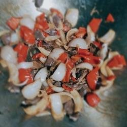4. Stir fry until dry and add a small amount of oil.Onions, red pepper flakes