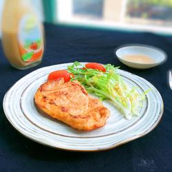 Wash the chicken breast and cut off the excess fat, break it into three pieces with a knife horizontally, prick it with a toothpick for easy marinating and flavor, and bake it sweetly Mix with water and marinate overnight in the refrigerator.Heat oil in a hot pan and fry chicken breast until brown and hard, turn over and fry until golden brown.