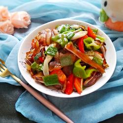 11.Add green pepper cubes Stir-fry for 15 seconds