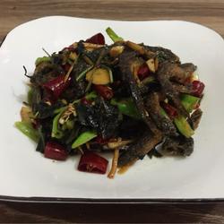1. Prepare the ingredients (fried loach is ready for later use).Wash and chop the perilla, don't chop it too finely.Cut the dried chilies into sections, shred the ginger, cut the garlic cloves into cubes, and cut the pepper into shreds.