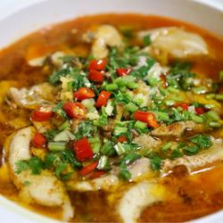 5. Bring the soup to a boil again, add the submerged fish fillets in step 1, and use chopsticks Gently cut open, boil the soup for one minute, then turn off the heat, pour the fish fillets and soup into the bean sprout bowl, and sprinkle with chili powder, pepper, ginger, garlic, red pepper, chopped green onion or coriander.