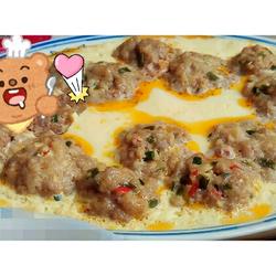 15. Pour the beaten egg liquid on top of the steamed meatballs and continue Steam for 4 minutes, then take it out of the pot.