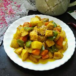 12. Place on a plate and sprinkle with white sesame seeds and pat the finished product Picture, the delicious curry chicken is complete