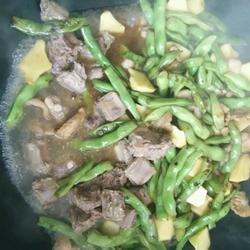 3. Fry the kidney beans and add the oil after they change color.When the oil is hot, add the meat slices., because my husband likes to eat meat?