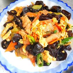 5.Add carrots and fungus, stir-fry a few times to soften the side dishes