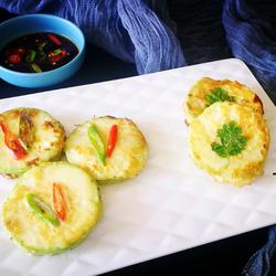 10. Spread the mixture of flour and starch into the flat plate, and pour the stuffed meat into the pan.Coat both sides of the melon slices with flour.Gently shake off excess flour.