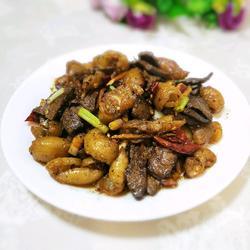 1. Wash the pig intestines and cut them into small pieces.Add oil in the pot and stir-fry until brown.Add some cooking wine and continue to stir-fry until the oil is ready.