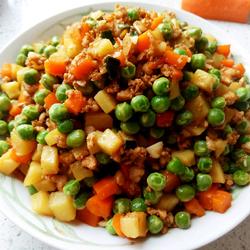 Peas, diced potatoes, and diced carrots can also be boiled in water or oiled.I think the oil is too oily, so boiling them in water is better