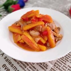 Because papaya is not suitable for stir-frying for too long, the pork must be fried first