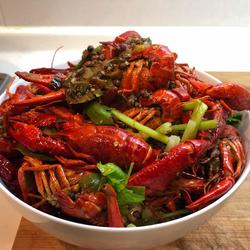 4. Place the lobster After passing the oil, put it away.Heat the remaining oil in the pot and add small red pepper, small hot pepper, green onion, ginger, garlic, dried chili pepper, and Sichuan peppercorns.Stir-fry until slightly fragrant.Add the prepared lobster and half a bottle of cooking wine., press the lid and cook over high heat for 5 minutes