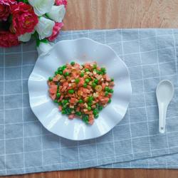 9.Add ham and stir-fry, add salt and stir-fry, and finally add chicken essence Stir evenly and serve.