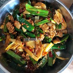5. Add bean paste, ginger, garlic and fried green pepper and stir-fry until cooked Lift the pot.