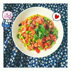 6. Transfer to a plate, sprinkle with coriander, here is another picture of the finished product, a delicious and delicious dish Everything is ready.The edamame and fried ham are ready to go with rice.